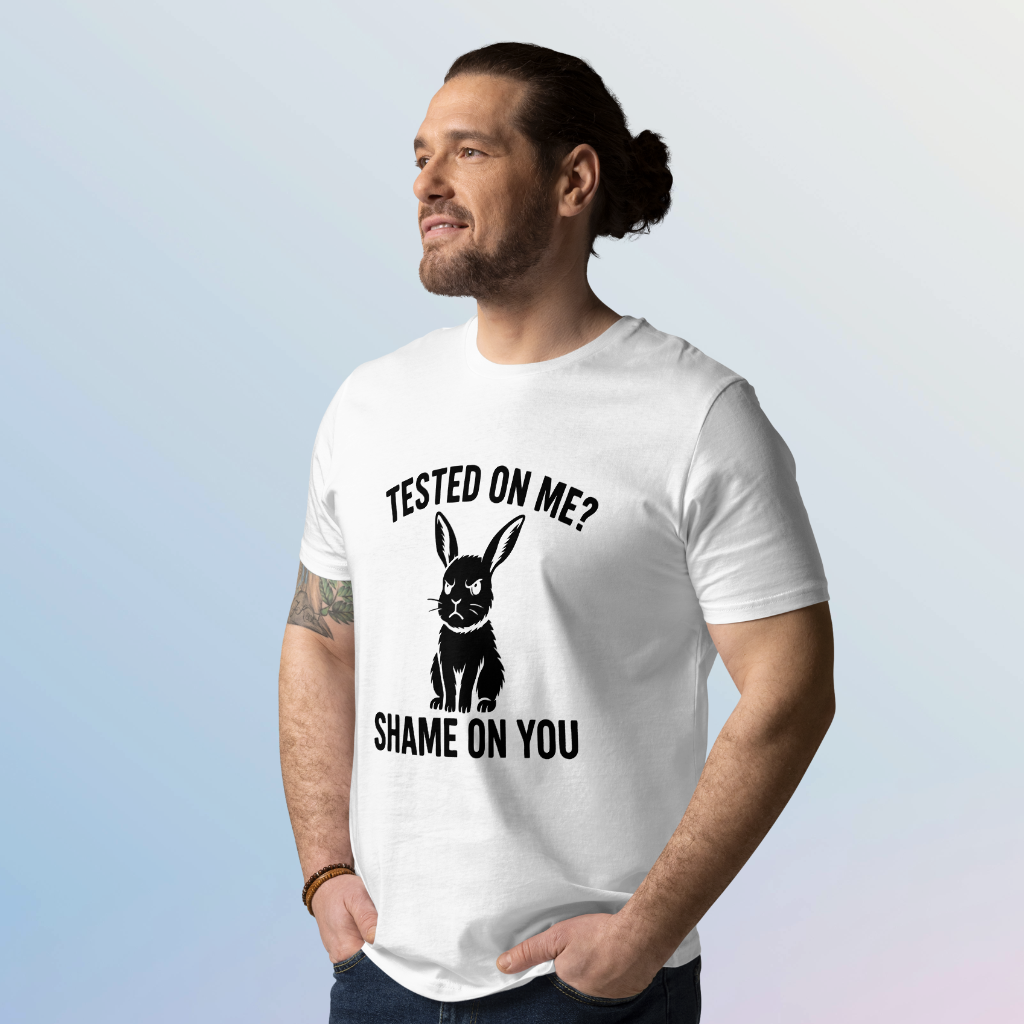 Angry Bunny Vegan Organic T-Shirt | Tested on me? Shame on you!